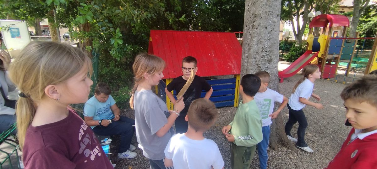 U školi – lov na brodomaketarsko blago. Školarci su sudjelovali u velikoj igri potrage: sakrili smo dijelove makete bracere u 10 paketića po parku ispred škole, a rješenja zagonetki vodila su ih do svakog od njih. Dvije grupe učenika podijelile su zadatke – jedni su čitali i rješavali zagonetke, drugi su tražili dijelove, a treći sastavljali maketu. Rezultat? Timovi puni entuzijazma i dvije uspješno sastavljene bracere.