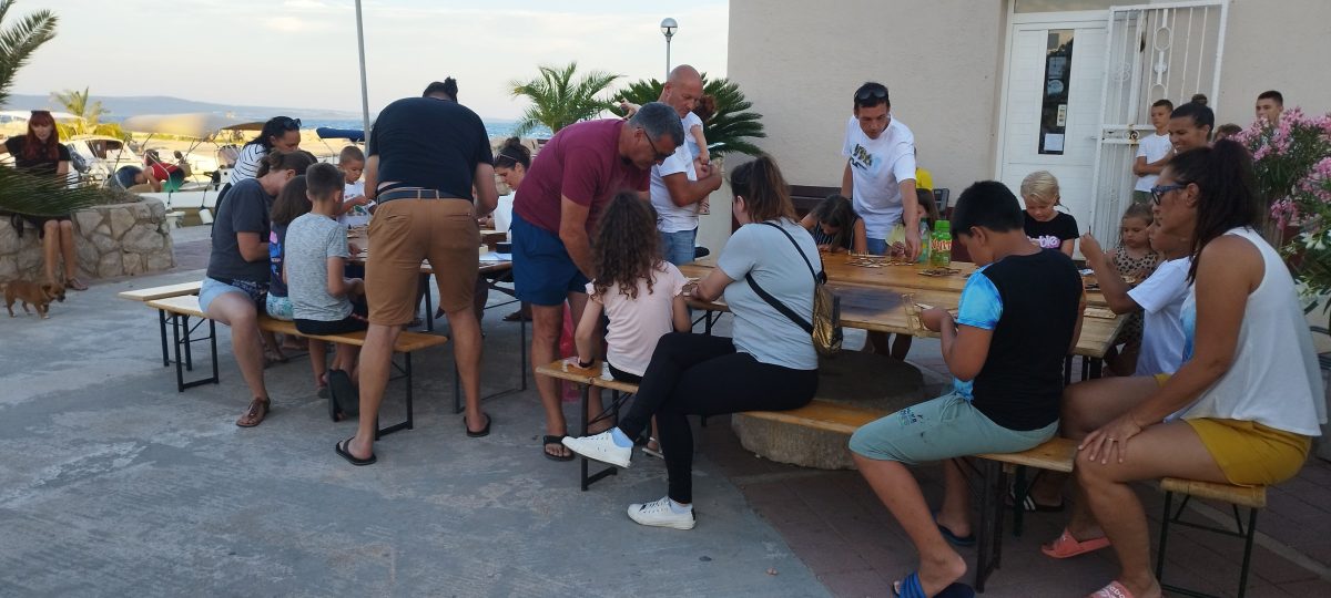 Više od 50 djece imalo je priliku izraditi vlastite makete Primorke i Tuga, a vesela atmosfera i dječja kreativnost zadržali su nas sve do duboko u noć. Kad je pao mrak, nismo se dali poći – umjesto toga svijetlili smo mobitelima poput publike na koncertu i nastavili raditi i družiti se pod zvijezdama.