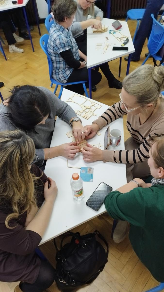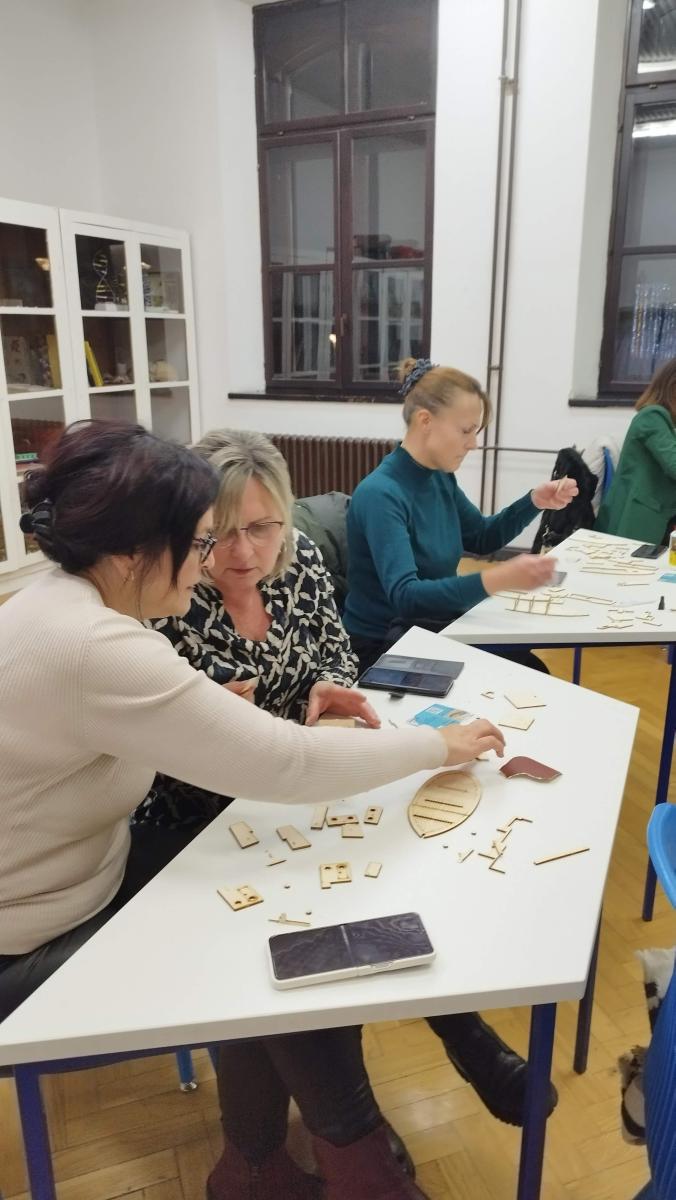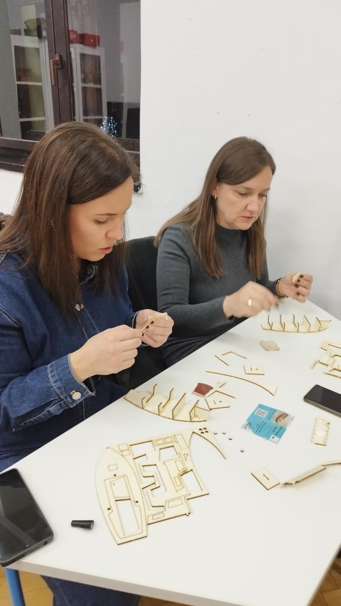 18.12.2024. održali smo tri radionice s 52 učenika sedmih i osmih razreda u OŠ Vladimira Nazora u Đakovu, te još jednu pokaznu radionicu na aktivu Županijskog stručnog vijeća u OŠ Ilok, za 16 nastavnika razredne nastave iz Vukovarsko-srijemske županije. Nastavnici su izrazili želju da čim prije započnu s radom s učenicima u novom obliku, a učenici su poželjeli raditi na još maketa.